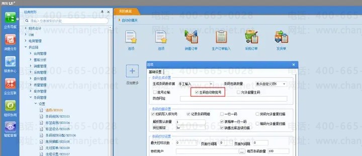 1.条码管理-设置-选项:勾选生码自动取批号。