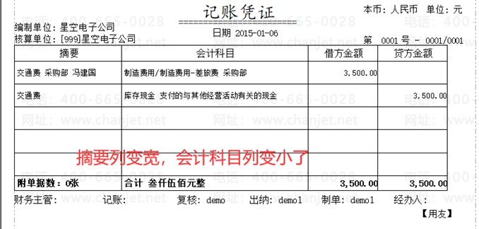 凭证打印-设置-详细格式设置-通用格式设置-表体,在表体各列的宽度调整数值。