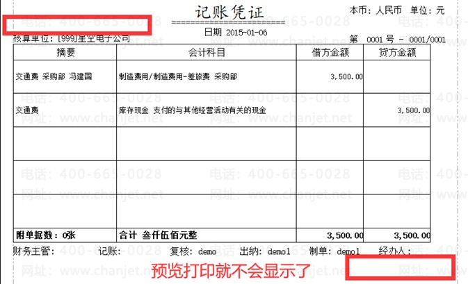 a、 凭证打印-设置-详细格式设置-表头表尾,编制单位选表头,下方选择不打印