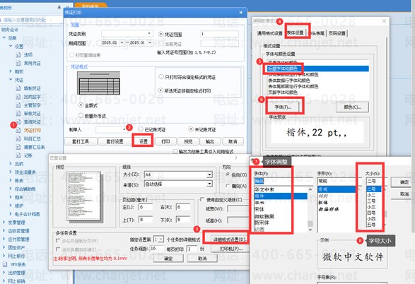 2、 凭证打印-设置-详细格式设置-表体设置,表体数据行字体和颜色-字体