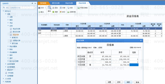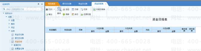 选择好会计科目,单击菜单上的“日报”按钮,可以预览和打印日报单。
