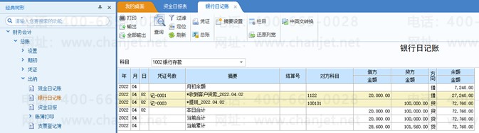 进入【财务会计】-【总账】-【出纳】-【资金日报】中选择好日期,可以查询到当天现金科目和银行科目的今日余额、今日共借、今日共贷、余额方向、借方发生凭证笔数、贷方发生凭证笔数等情况。