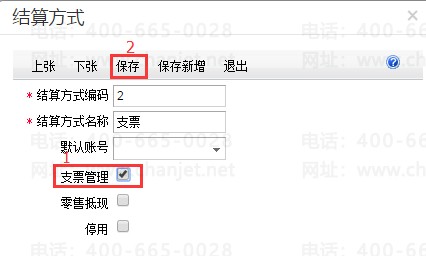 2.【基础设置】-【结算方式】,勾选【支票管理】并保存。