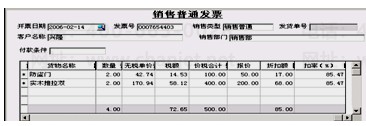 在用友通中,对于销售方的折扣销售,有两种处理方式。一是定义每个客户的扣率,这样在填制销售发票的时候,自动按照设置好扣率计算出折扣额,进而计算出价税合计;二是按照购买数量对整张发票进行折扣