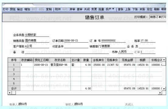 2、填制销售订单,业务类型为分期收款销售;如图2-8所示。