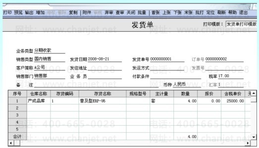 3、参照销售订单生成销售发货单,销售出库单及销售发票;分别见图2-9、图2-10和图2-11所示