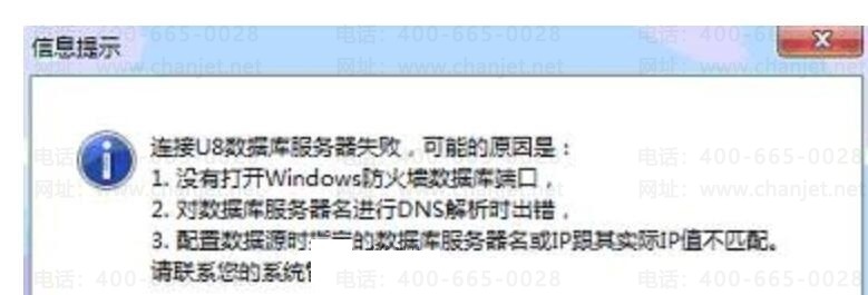 今天在调试U8客户端时遇到连接数据库失败的问题,问题提示附图如下: