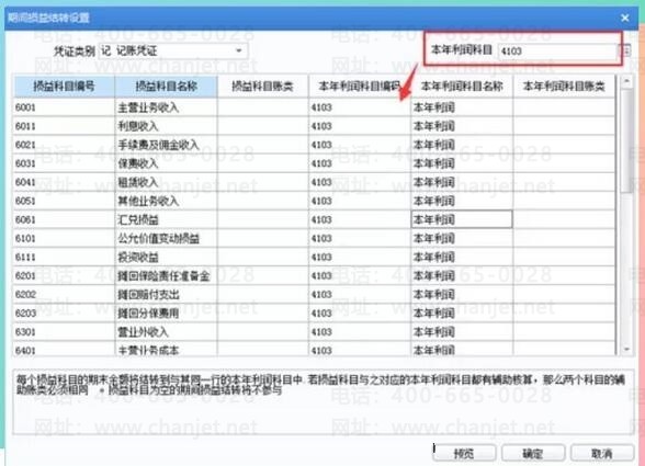 右上角输入本年利润科目编码4103后,选中表格中空白列即可自动匹配本年利润科目编码和名称。