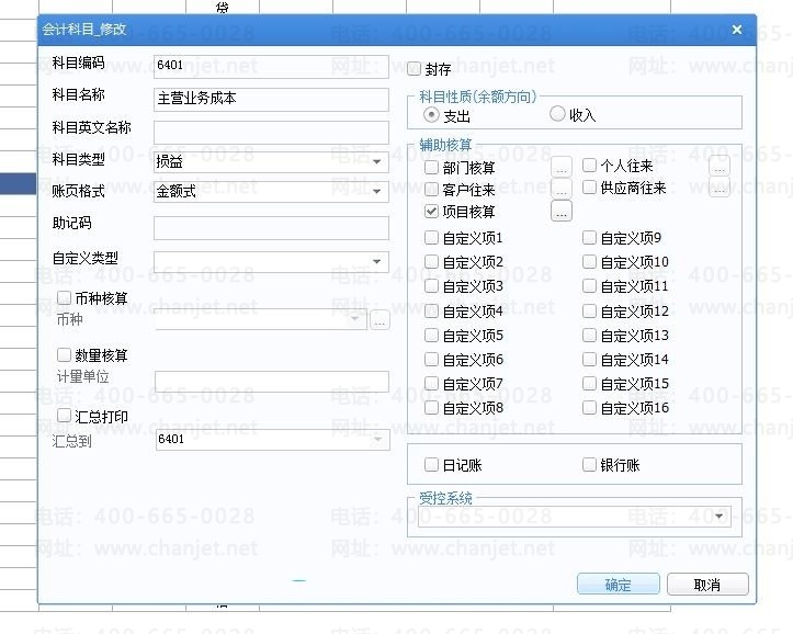 2、勾选项目核算,如果还需要设置客户核算,可以同时勾选,一定要主要受控系统,如果购买了应收应付系统,可以选择应收应付系统,否则,选空,这个地方一定要主要,设置错误,月末会结帐不了