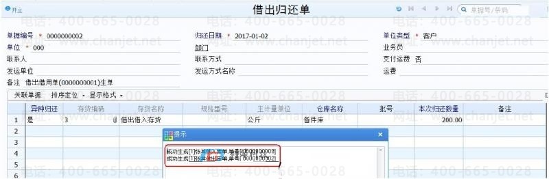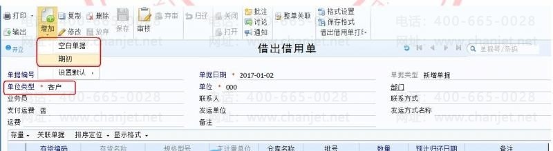 1.录入借出借用单,支持增加空白单据,和录入期初单据,期初单据不进行出库业务。