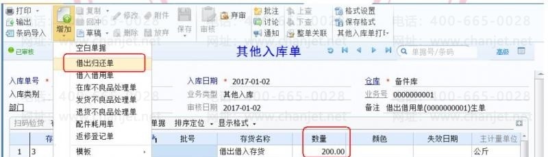参照借出归还单做其他入库单,该单据不进行成本核算。