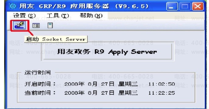 R95以后的版本:双击任务栏中的用友GRP/R9应用服务器”,在应用服务器配置的对话框中,点击“Borland socket server”的图标即可。