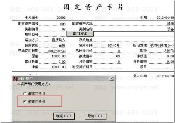 同一固定资产由多部门使用,并且使用比例不同,在软件中如何体现?