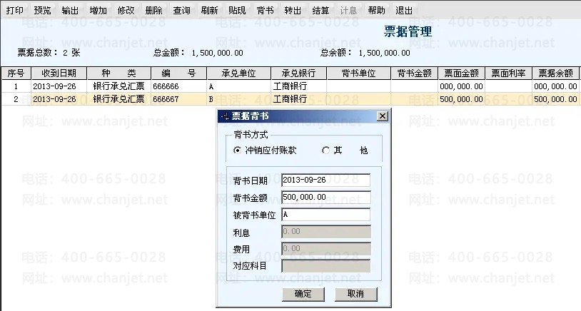 注:被背书单位只能是供应商,所以需要在供应商档案中添加A