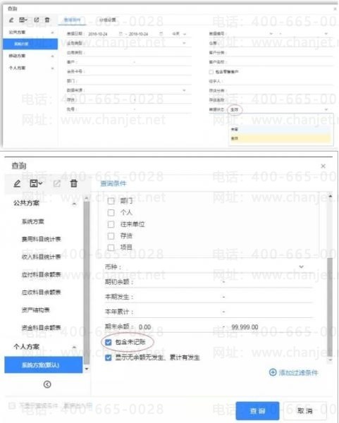 5.核对时,业务不能勾上【包含未审核】,财务报表需要勾上【包含未记账】。