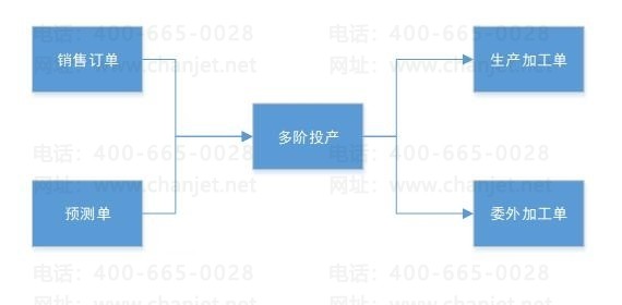 可根据销售订单、预测单多阶投产,可下达生产加工单、委外加工单