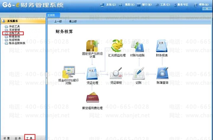 1. 登陆某一账套,如被复制基础档案账套,打开‘工具’里的总账工具