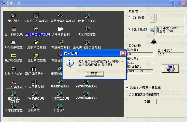 4.参照左边的项目栏双击进行基础档案的复制,注:如果有应付单位分类,则需要先复制应付单位分类,再复制应付单位,其他以此类推即可。