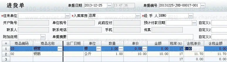 ②复制excel模板信息,通过“从剪贴板导入数据”,含税单价为零,或者以单价*税率算出含税单价,如图。