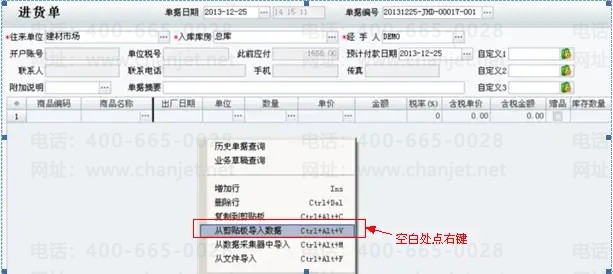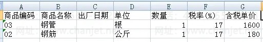 因为Excel文件中“单价”包含了公式,因此不能导入,只能通过“从剪贴板导入数据”的方式录入
