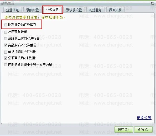 2.点击【维护中心】-【系统配置】-【业务设置】,勾选【批发业务允许负库存】: