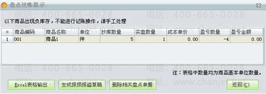 商品的成本算法是加权移动平均,盘点抄账后总量盘点单过账之前进行出库类单据过账,录入后导致现存量减少,而总量盘点单的盘亏数量大于当前的现存量,因此造成提示库存数量不足。