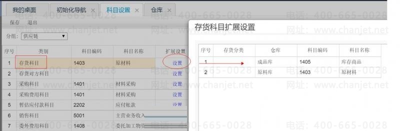 如果需要区分仓库中的存货,比如采购入库时是原材料、销售出库时是库存商品,这种情况的话也需要点开【设置】,依据仓库或者存货分类等定义不同的入账科目。