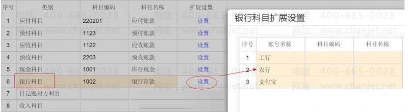 如果银行存款科目下有明细科目,比如微信、支付宝、工行、农行、零售收银等。那么可以点开【设置】,进入扩展设置中,选择不同的账套对应的入账科目。