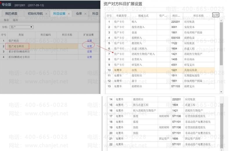 如果增加方式不同,并且存在减少处置,请参照下图到【设置】中定义明细
