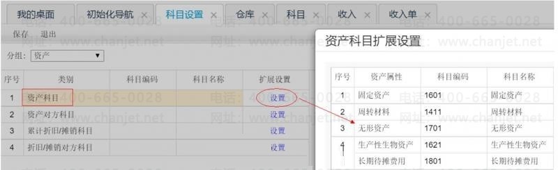 如果只是固定资产,不需要区分,可以直接在【科目设置】的界面直接选择科目。如果需要细分,则要点开【设置】。