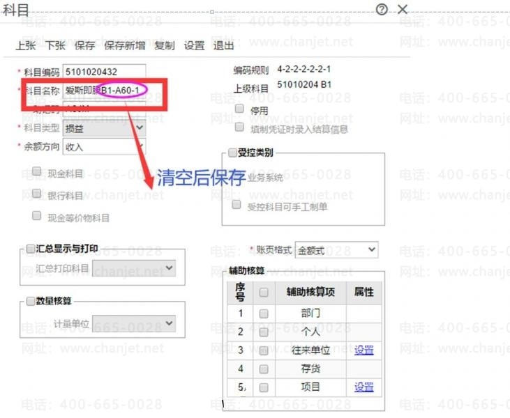 然后再进入科目编辑页面,把编码粘贴到名称后,再保存就好了。