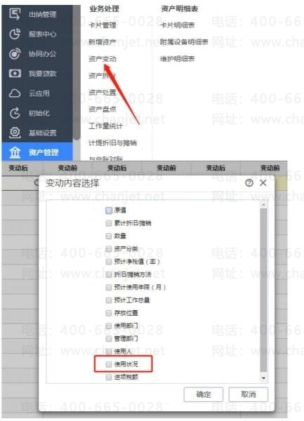 【问题解决】:可以将资产卡片变动为不需要计提:点击资产管理,协助资产变动,点击进入使用状况设置。