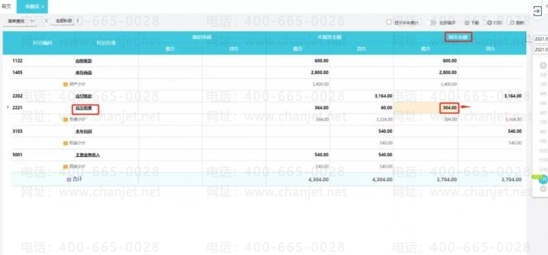 在企业日常财务工作中,会计人员为确保数据准确性,每月在做完账出具财务报表时会再核对余额表中对应的财务数据,可能会发现资产负债表与余额表中应交税费的数据不一致但是资产负债表又是平衡的,可做如下分析。以下图所示:余额表的应交税费期末余额为-304,资产负债表的应交税费期末余额为0,相差304。(注:余额表黄色表示期末余额在本身科目反方向,提醒作用)