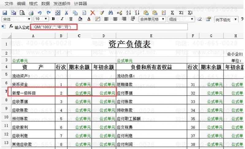 3、新增了一级科目但报表中没有设置此科目的取数公式;