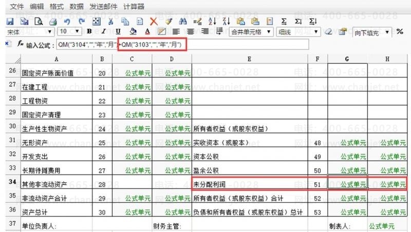 4、检查报表中“未分配利润”这一项的公式是否正确,有些报表中只有未分配利润的科目,通常需设置为未分配利润科目+本年利润科目的数;