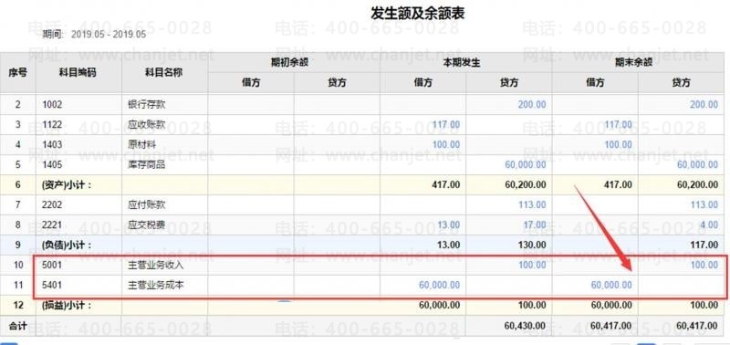 查看科目余额表发现损益类科目确实有余额,进行期间损益结转生成凭证后记账,再去试算查看报表结果。
