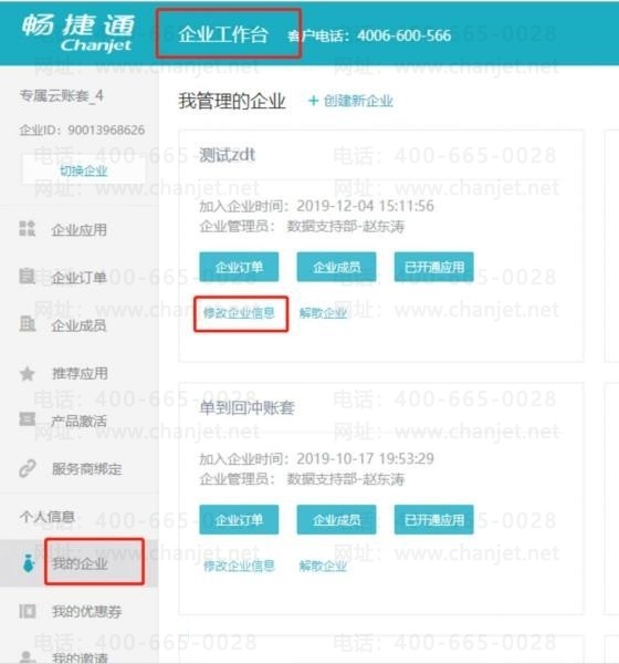 点击右上角头像下面的【企业工作台】,再点击左边【个人信息】里面的【我的企业】,在要修改企业名称的企业下面点击【修改企业信息】。