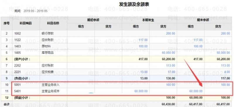 查看科目余额表如果发现损益类科目确实有余额,需要进行期间损益结转生成凭证后记账,再去试算查看报表结果。