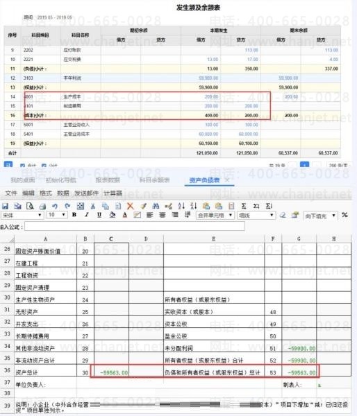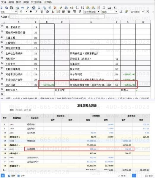 查看报表与余额表,发现其他数据都正常,只是报表相差的200是余额表中制造费用有余额,将制造费用结转后再重新试算。