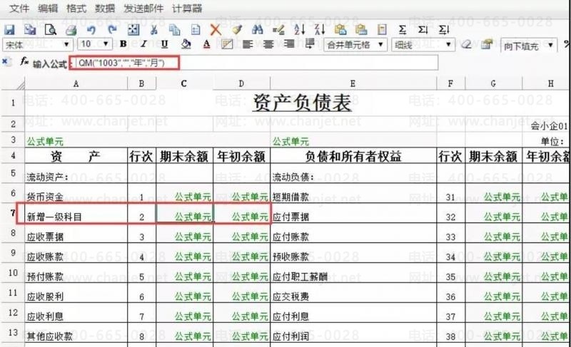 怎么确认呢?只要将科目余额表与报表进行核对,就会发现新增了一个一级科目,此时在【T-UFO】-【报表设计】中将公式设置好: