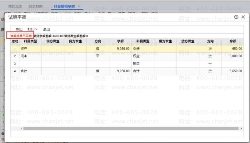 发现科目期初确实试算不平衡,并且与之前的数据核对,检查到是有个科目的期初忘记录入了,重新补录后期初后再重新试算出报表。