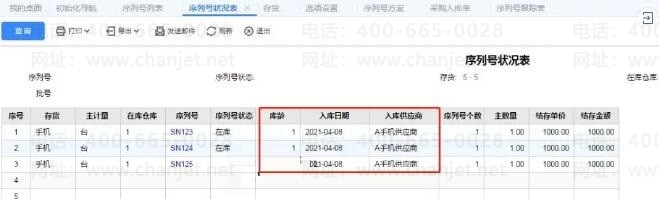 第五步:序列号状况表可以查询序列号的库龄以及采购供应商,对于在库时间较长的存货,可以采取一定的促销政策;