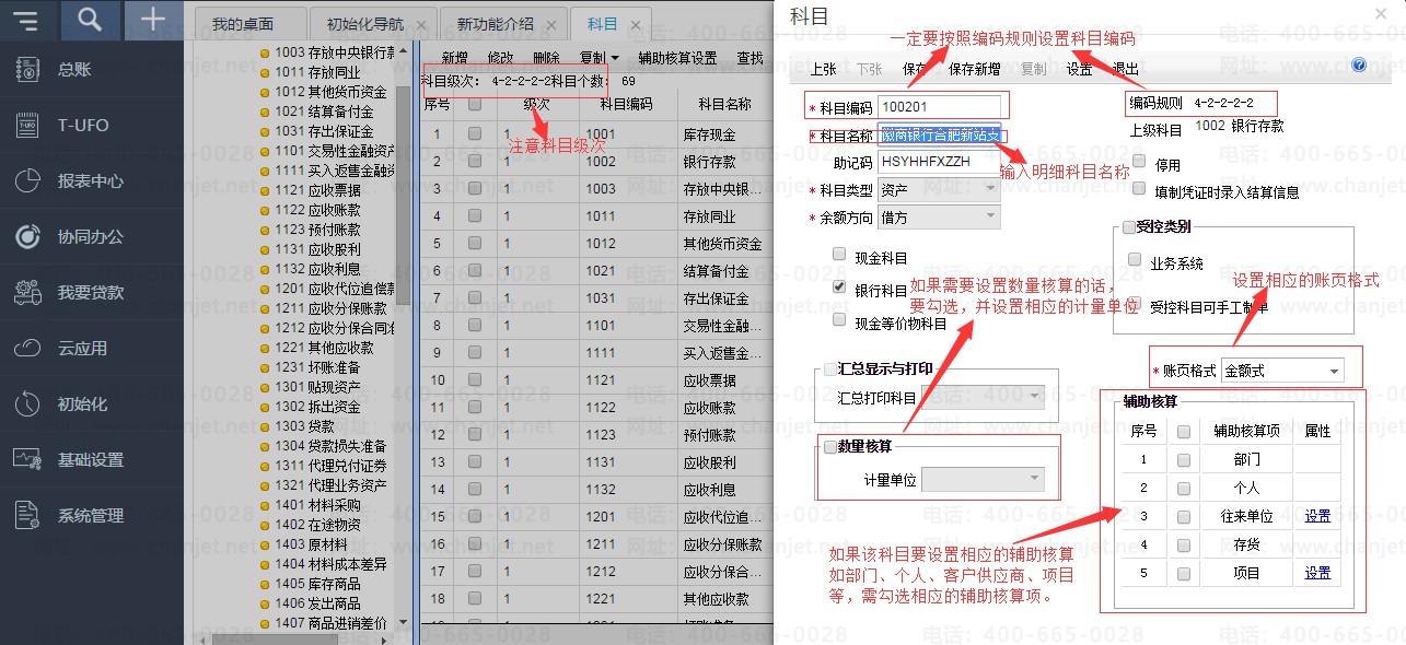 1、设置会计科目:点基础设置——>财务信息——>科目,进入设置会计科目的界面,可以进行增加、修改、删除、指定等相关操作。