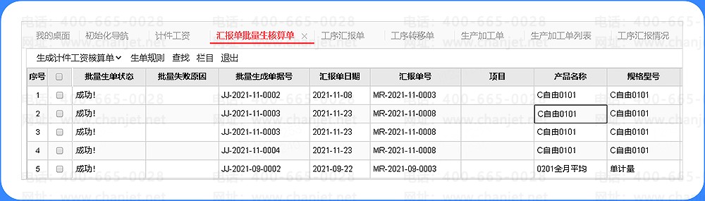 * 新增汇报单批量生核算单功能,分配功能权限后即可按特定规则将工序汇报单批量生成计件/计时工资核算单