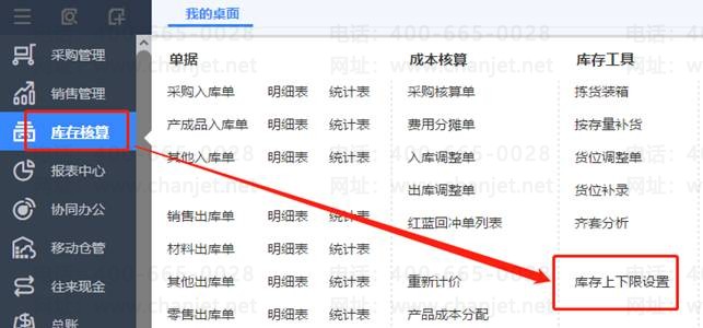 3、保存后,鼠标点击库存核算-库存上下限设置,如下图: