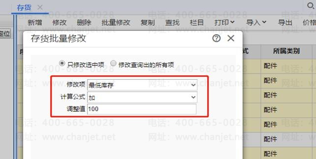 3、如果部分材料是一样的库存信息,那就勾选部分材料,点击批量修改,如下图: