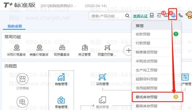 当我们库存数量不足时,系统会出现红色预警信息,点开预警信息就可以看到短缺的数量,如下图: