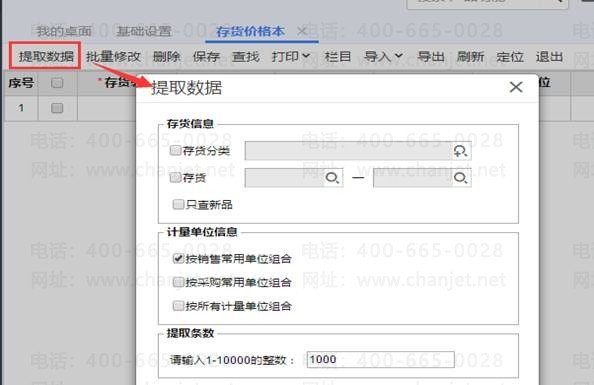4、提取需要进行设置最低售价的存货,此处默认提取全部存货,如下图: