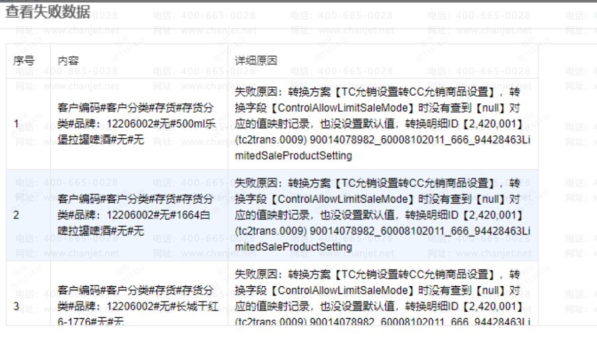 [问题现象]: 初始化订货商城允销设置失败记录。