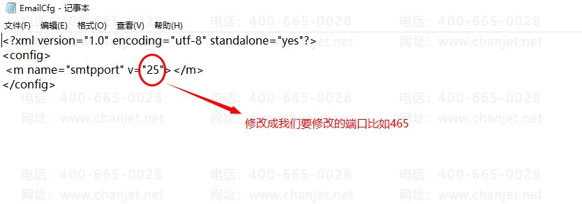 然后,使用记事本打开,针对端品“25”修改为“465”即可。